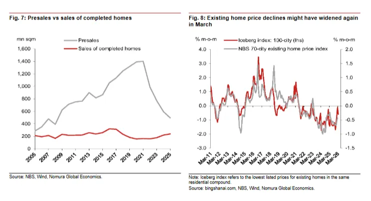 根据对18个城市的调查数据,我们估计,第一季度现有住宅的销量同比降幅显著收窄,从2025年第四季度的-23.0%降至-2.1%。这一迹象表明市场正在出现企稳的态势。
