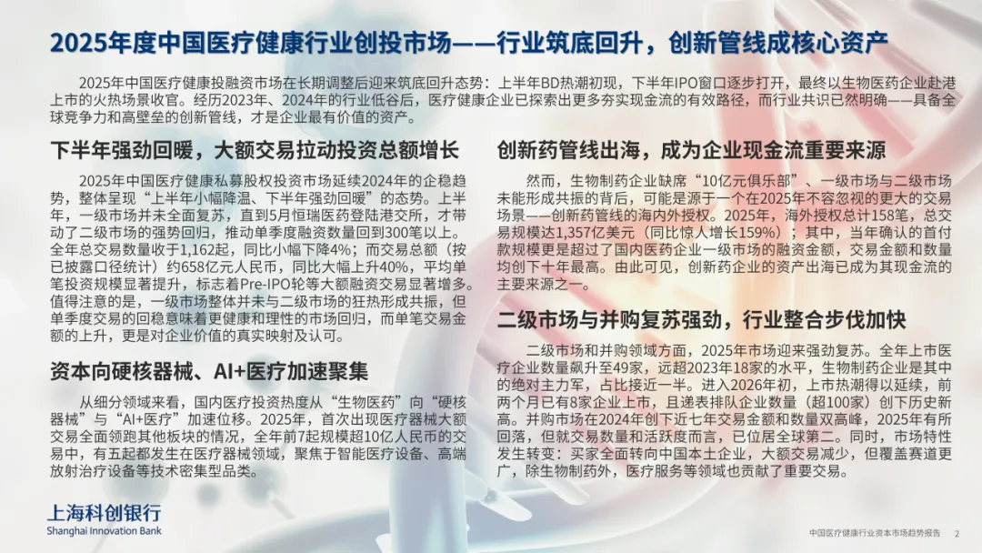 关注我们,后台回复“202604131”就可以获取《上海科创银行:2026年中国医疗健康行业资本市场趋势》(完整版) 的全文下载链接。