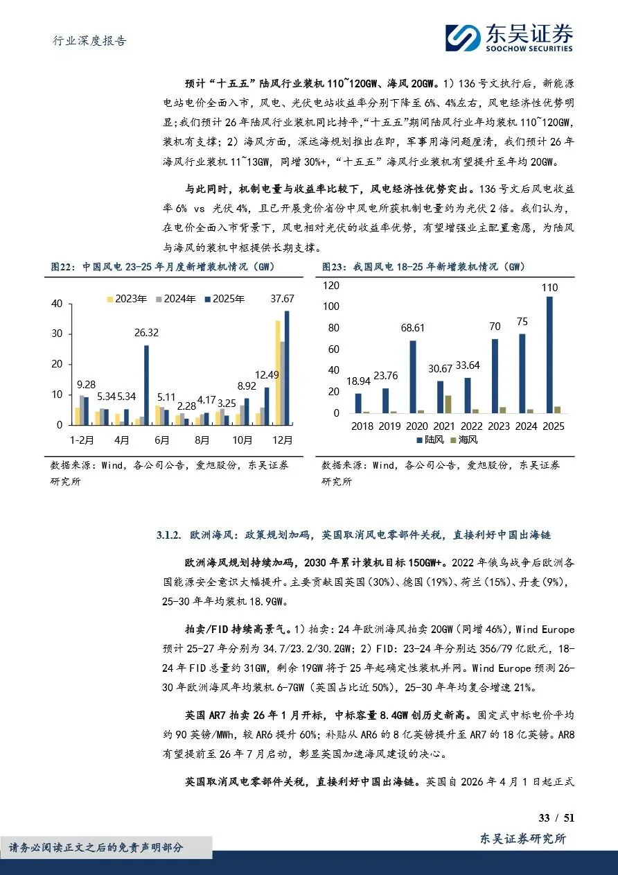 电力设备行业,特别是电新领域,正迎来前所未有的发展机遇。随着全球能源转型的加速推进,储能、锂电、海风等细分领域展现出高景气度,成为行业增长的主要驱动力。储能市场因政策驱动与全球缺电催化爆发,户储及大储需求激增;锂电市场则受益于国内动力需求恢复、单车带电量提升及出口增长,需求强劲且盈利持续改善;海风领域,国内深远海规划落地在即,欧洲海风拍卖及FID持续高景气,为行业带来新的增长点。整体来看,电新行业正处于快速发展期,未来增长潜力巨大。
