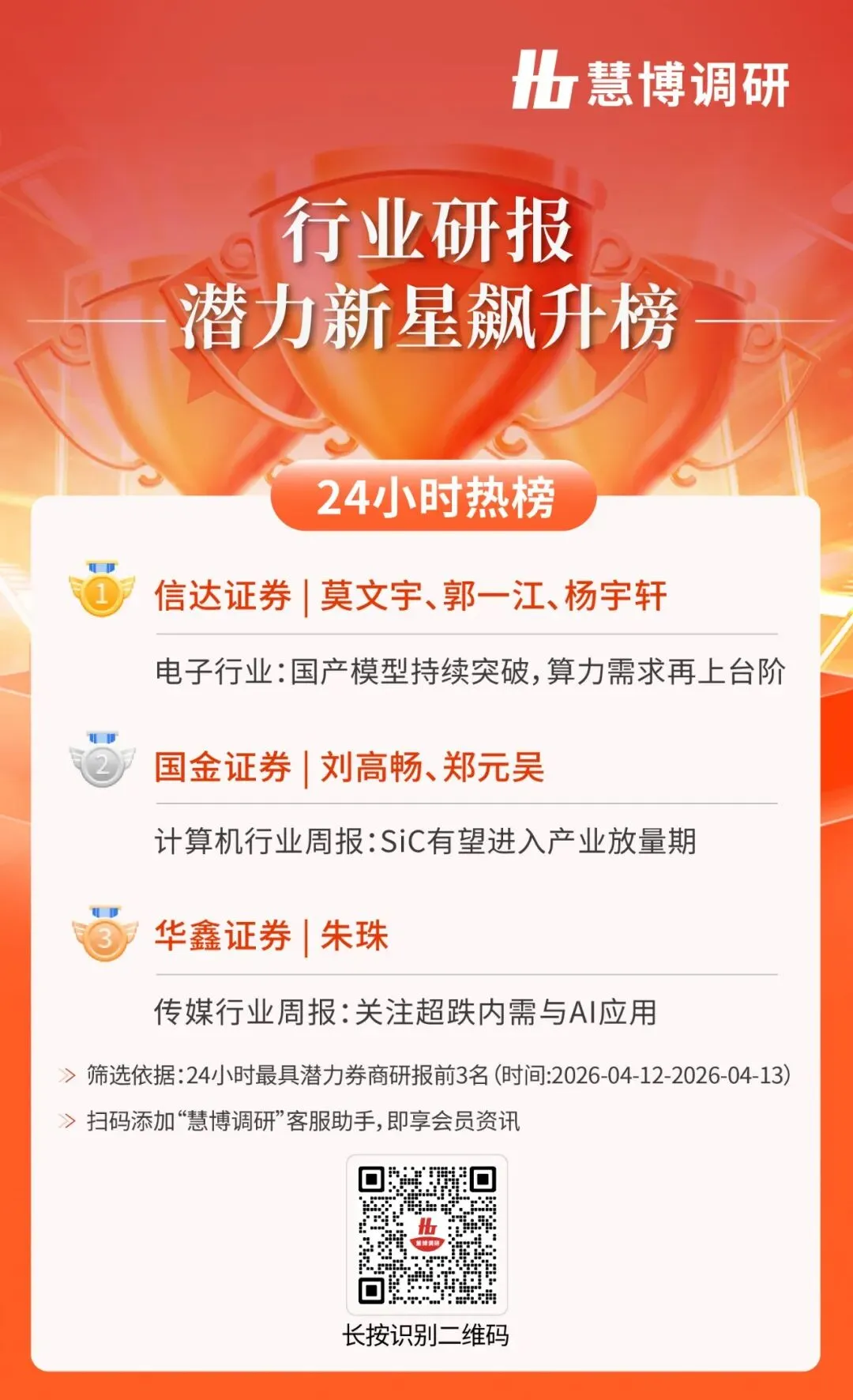 24小时热榜 | 4月13日行业研报新星飙升榜速递