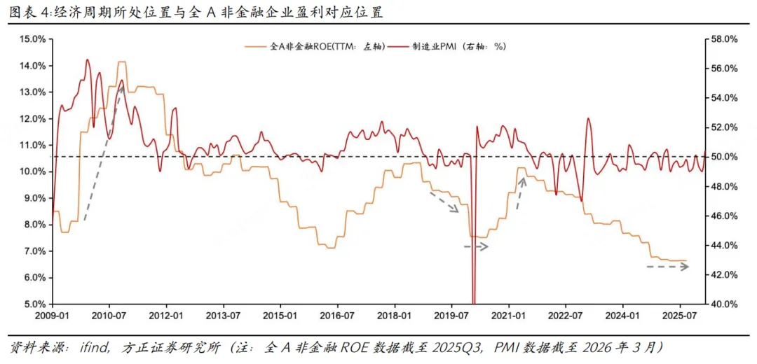当前来看,本轮的市场修复预计修复强度适中,有望一个季度前后实现修复。2025Q3全A非金融企业ROE水平达6.64%,企业盈利触底,甚至低于2016和2020年低点水平。当前2026年3月PMI数据录得50.4%,较上个月回升至扩张区间。经济基本面触底反弹与企业盈利触底,叠加未来美伊冲突和谈预期不断升温,预计本轮修复将对应上述的第二种情形。