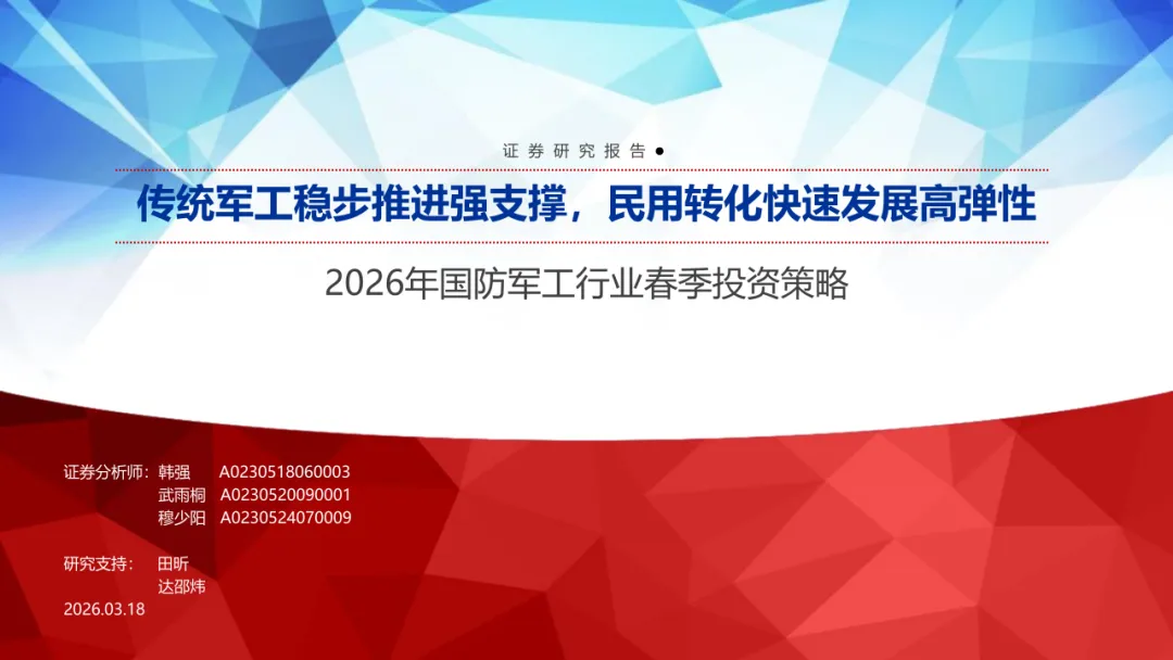 关注我们,后台回复“202604143”就可以获取《申万宏源:2026年国防军工行业春季投资策略》(完整版) 的全文下载链接。