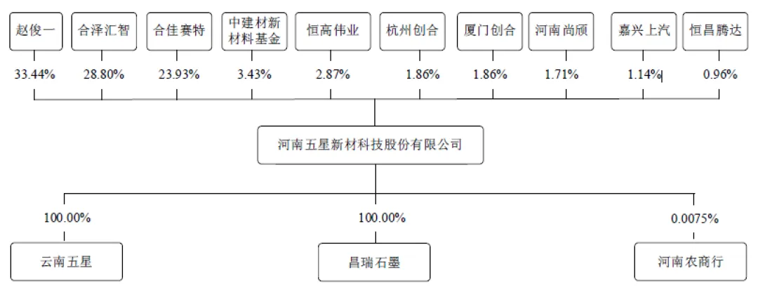 前十大股东中,除赵俊一外,合泽汇智持股28.80%、合佳赛特持股23.93%,二者均为赵俊一控制的持股平台;中建材新材料基金、恒高伟业、杭州创合等机构股东持股比例在0.96%-3.43%之间。