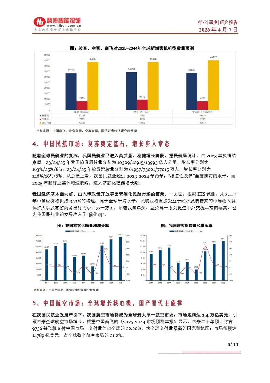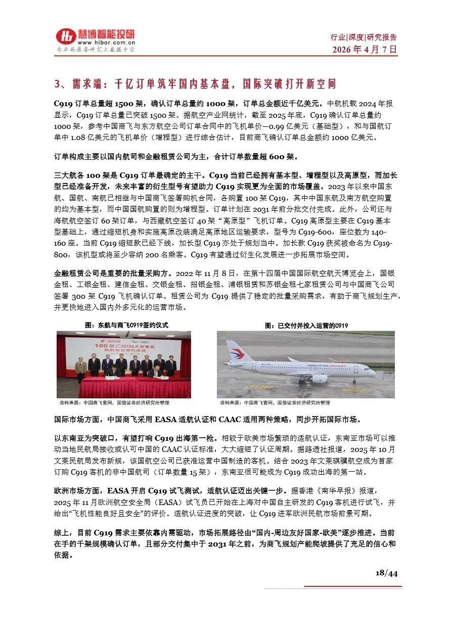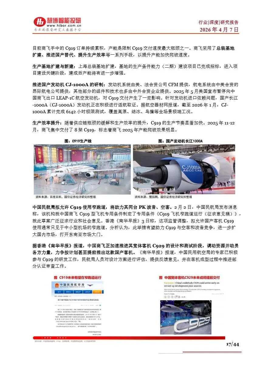 大飞机行业作为国家战略性新兴产业的重要支柱,承载着经济、科技与国防的多重战略价值。当前,全球民航市场正经历复苏浪潮,国产大飞机C919凭借其卓越的性能指标和成本优势,逐步打破波音与空客的长期垄断格局,向“ABC”三足鼎立的新时代迈进。中国商飞通过持续的技术创新和产能扩张,不仅稳固了C919在国内市场的领先地位,还积极拓展国际市场,推动国产大飞机走向全球舞台。同时,C929宽体客机的研发也在稳步推进,预示着国产大飞机全系列机型布局的日益完善。