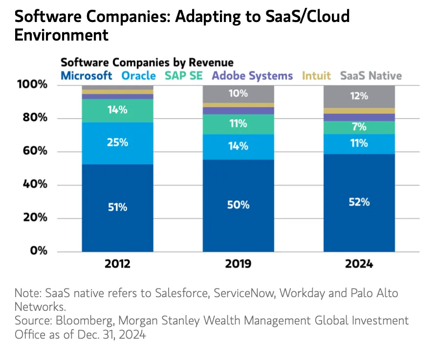 确实,一些公司(例如 Oracle )未能完成这一转型,收入因此停滞不前。但也有许多公司成功转型,包括 Microsoft 和 Adobe ,同时还涌现出一批新公司,如 Salesforce,ServiceNow 和 Workday 。