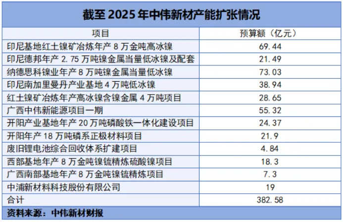 而在中伟新材超380亿元的产能规划中,有近70%为镍资源扩张项目。