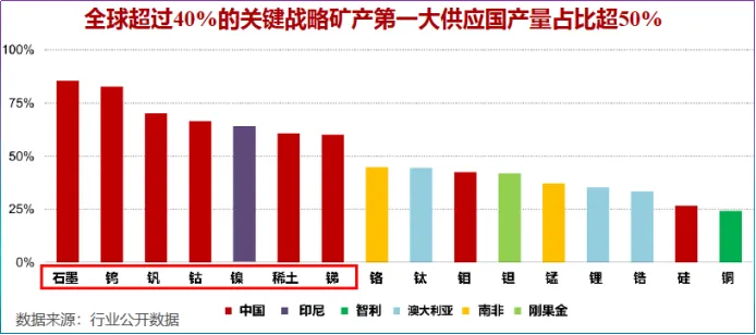 全球供应格局看,我国在钨、钴、锑等战略金属方面握住了超50%储量,是全球第一大供应国。