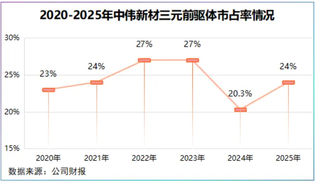 得益于资源禀赋以及客户背书,2025年公司三元前驱体市占率24%,连续6年保持行业第一。