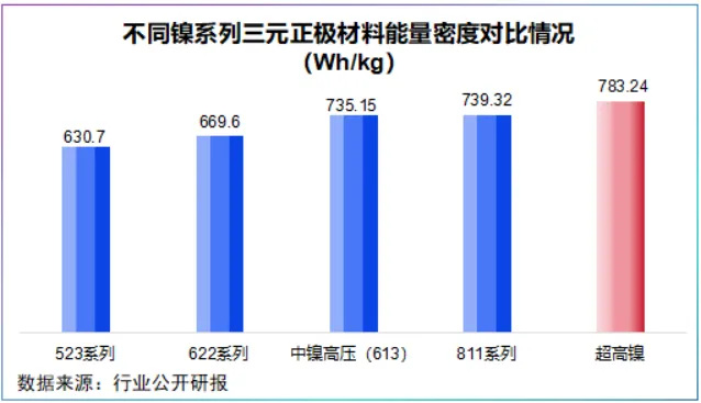 在电池的充放电过程中,镍是主要的电子供给者,因此镍的含量越高,能量密度就越大,电池续航优势越明显。