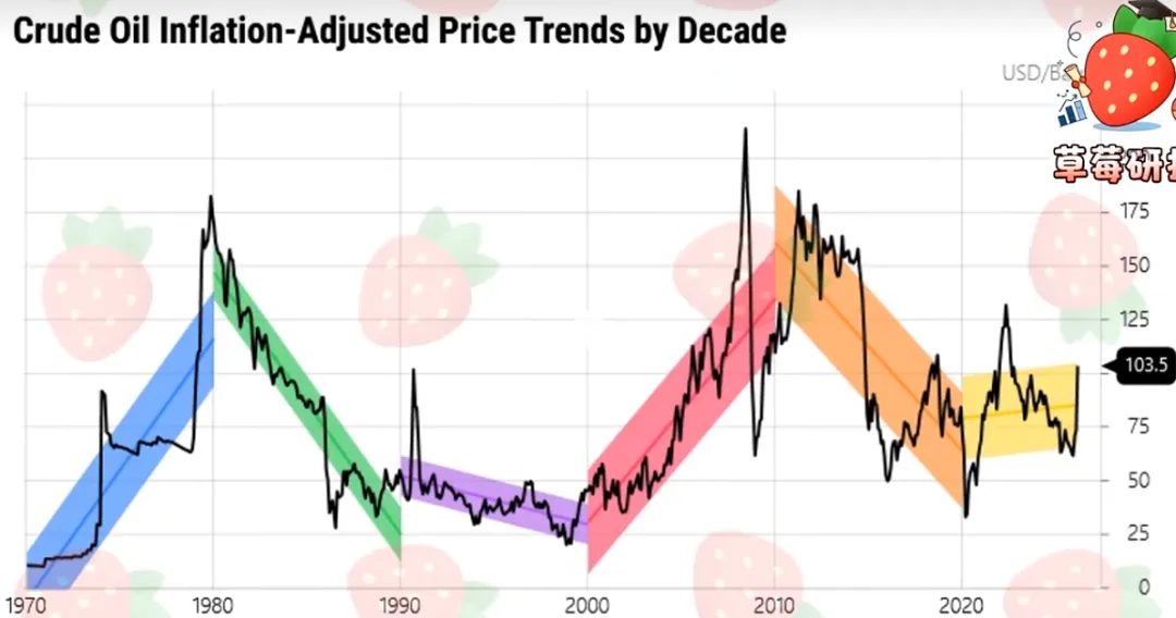 用每十年线性趋势标准差来判断目前能源价格所处的相对位置,衡量长期趋势的偏离度,倘若折现到当下计算,原油价格远未到达经济衰退痛点价格。