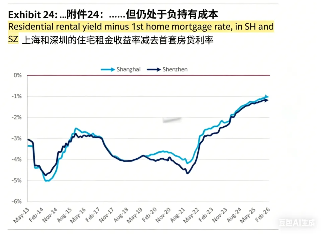 高盛研报:中国房地产3年将涨 15%.谁信谁接盘?高盛地产研究团队在4月9日发表的最新报告,上海和深圳将会追随香港,在2026年四季度完成房价止跌,2025年末到2028年末,这两个城市的房价将累计上涨15%,27和28年会加速上涨,而香港同期整体涨幅为25%。其他高能级城市,比如北京、广州、杭州、成都等,房价企稳时间将比上海和深圳滞后6至24个月。同日高盛宏观团队也发表了相关研报,宏观团队认为,大规模刺激政策的门槛正在提高:去年下半年房价快速下跌阶段并未有相关政策出台,今年年初市场具备自修复功能,整体热度有所回暖,因此房地产相关政策整体将保持渐进式,呈现拖而不举的态势。若后续有新的支持政策出台,深圳和上海的房价有望在未来一到两年内企稳。也就是说,高盛宏观团队一方面不认为2026年末这两个城市的房价能够完成止跌,另一方面也不认为未来两年两地房价将迎来15%的上涨。人口层面