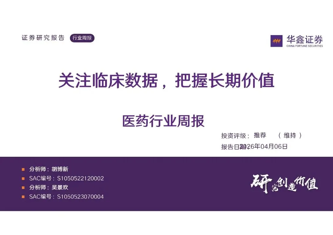 【深药研报】关注临床数据,把握长期价值(文末可下载)( 来源:华鑫证券 )一键领取报告感谢关注!很高兴为您分享这份报告。📥 获取完整版指南:请前往公众号对话框,回复关键词「20260415」,即可获取。👉温馨提示:本报告源自公开渠道,仅供内部学习参考,请勿用于商业目的。