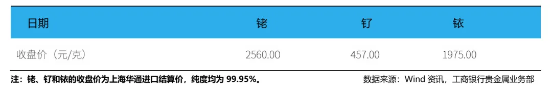 根据上海华通的数据显示,截至4月10日,99.95%现货铑金进口结算价为2560元/克,上涨0%。99.95%现货钌金进口结算价为457元/克,上涨0%。99.95%现货铱金进口结算价为1975元/克,上涨0%。