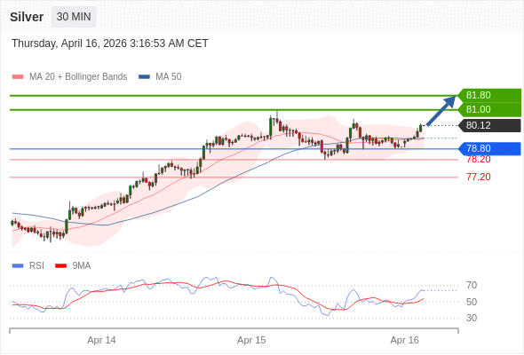 交易策略: 在 78.80 之上,看涨,目标价位为 81.00 ,第二目标价为 81.80 。