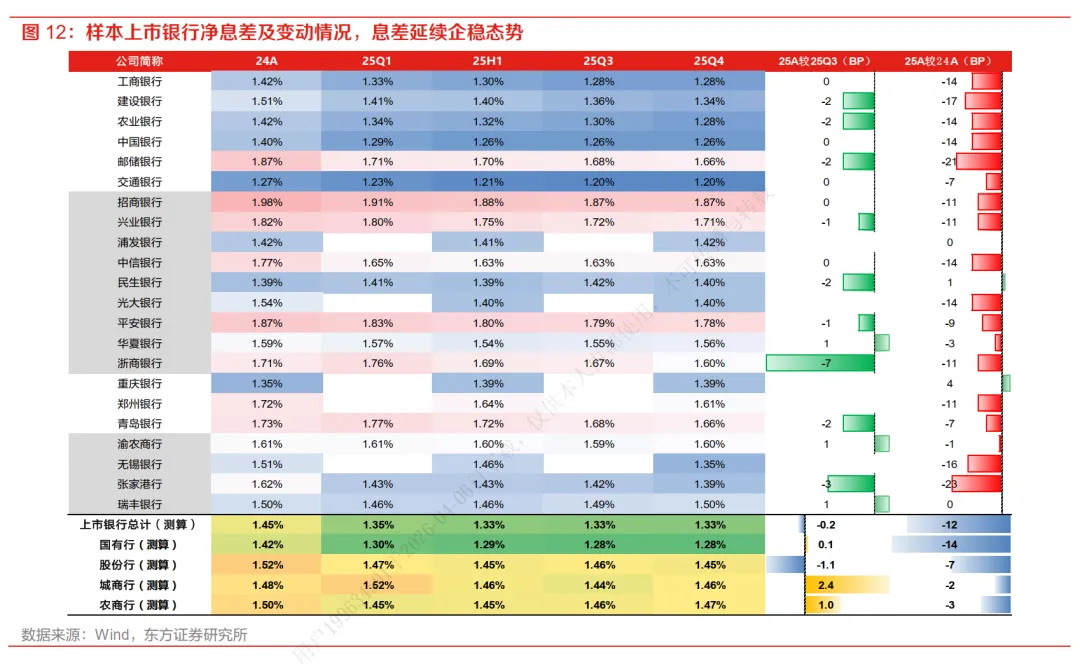 2.息差阶段性企稳:样本银行净息差约为1.33%,自2025年上半年以来表现稳健 。资产端收益率虽下行,但受存款重定价和同业存款自律机制影响,负债成本改善空间较大,支撑了息差表现。