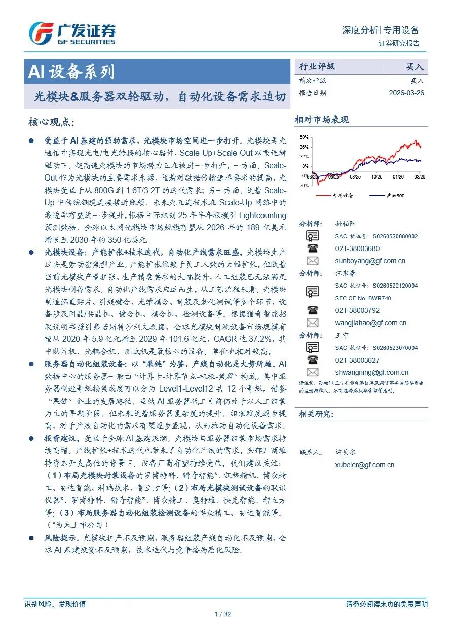 AI设备系列:光模块&服务器双轮驱动,自动化设备需求迫切