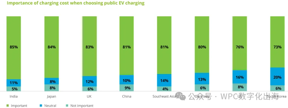 在本次调研覆盖的各个市场里,大家在选择公共充电服务时,都会把充电费用当作重要的参考依据。