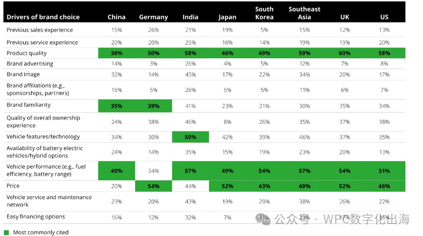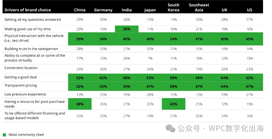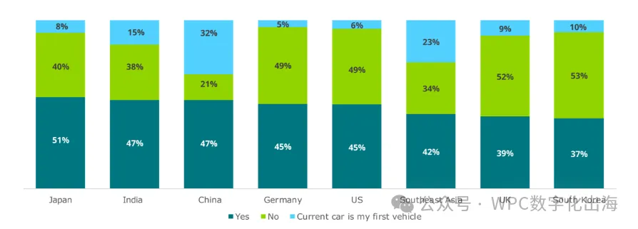 在中国、印度和东南亚接受调查的消费者,表现出最强的意愿在下一辆车时转向其他品牌,这或许是因为这些地区首次购车人群规模较大,品牌忠诚度相对较低。