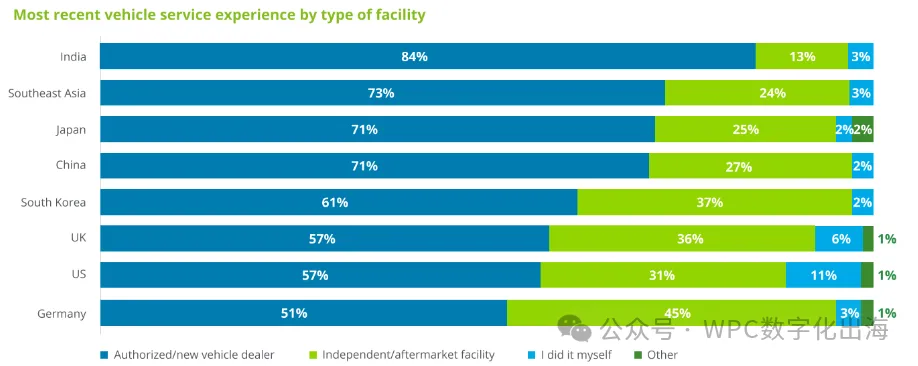 但在德国、韩国和英国,有不少用户更愿意选择独立的维修服务机构,这也反映出大家在用车过程中,越来越注重性价比,希望用更合适的成本获得更高质量的服务体验。