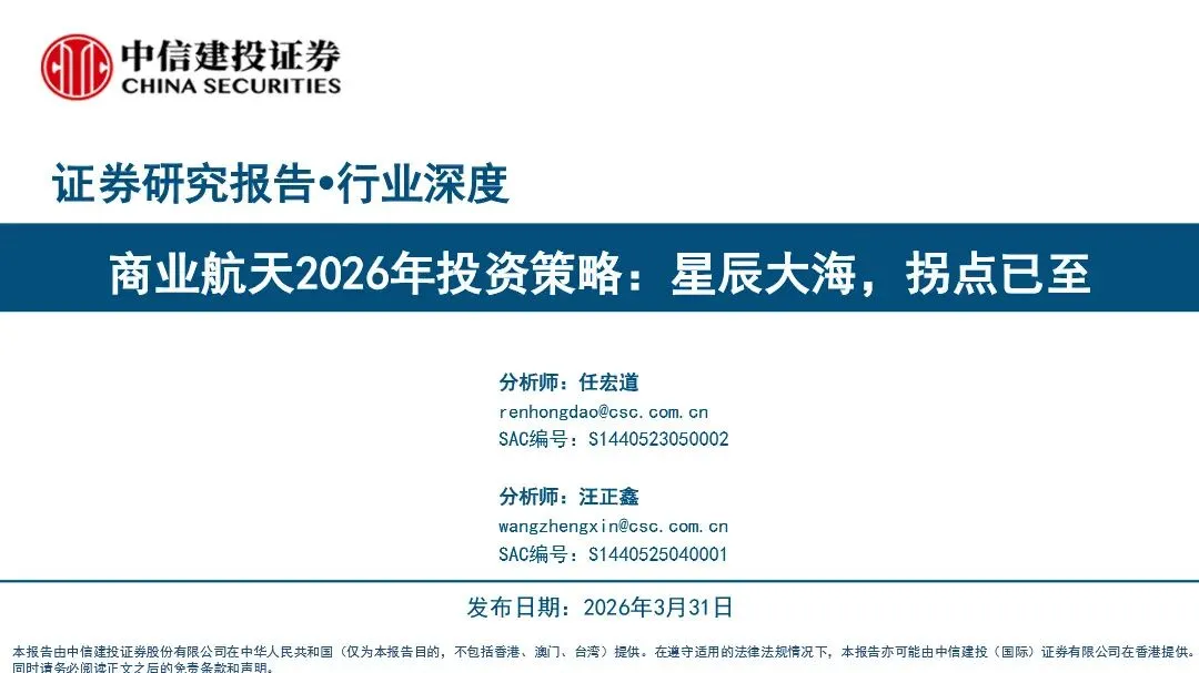 中信建投证券:商业航天行业2026年投资策略:星辰大海,拐点已至