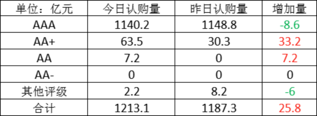 今日存单认购量规模1213.1亿元,较上一工作日认购量有所增加,增加了25.8亿元。