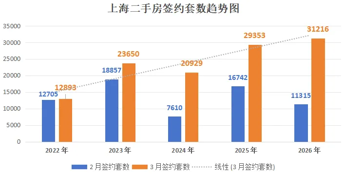 3月上海二手房市场迎来回暖,单月成交31216套,重回近5年3万套活跃线,楼市小阳春正式落地。