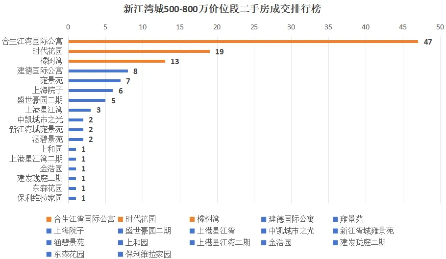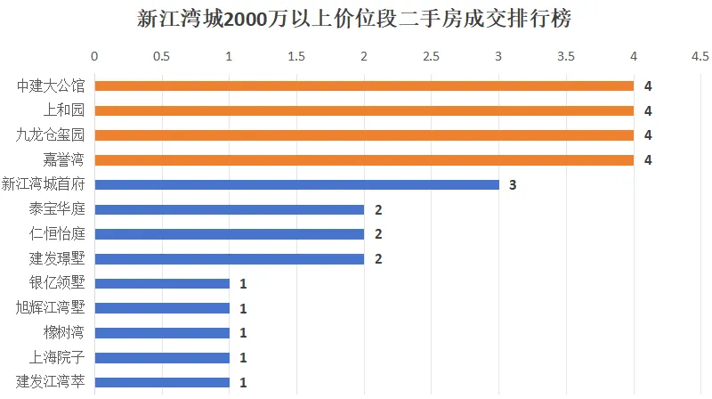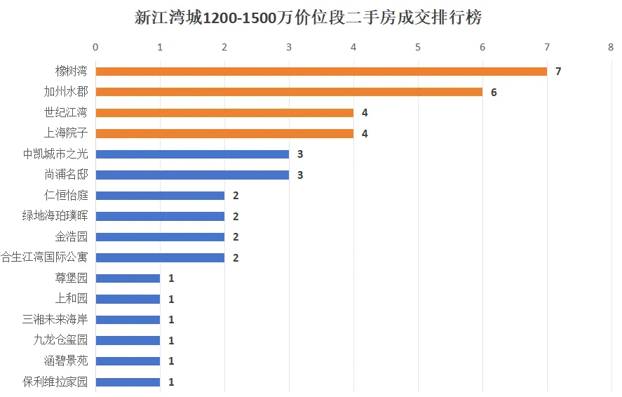 全年总成交41套,橡树湾、加州水郡、世纪江湾、上海院子共成交21套,合计占比51.2%,是绝对成交主力,走势直接决定整个价位段的均价与行情。