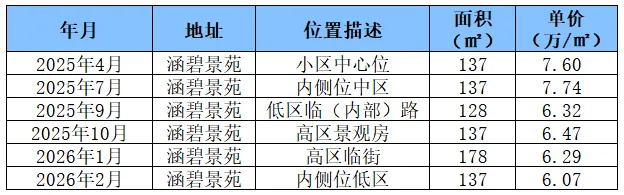 但像涵碧景苑等房龄较老的普通小区、一般户型,仍处价格承压期,可趁成交量回暖合理定价、尽快成交。