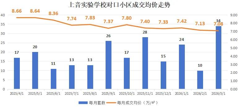 过去一年,上音学区共成交228套,流通性好,均价整体下行,累计跌幅约18.2%。