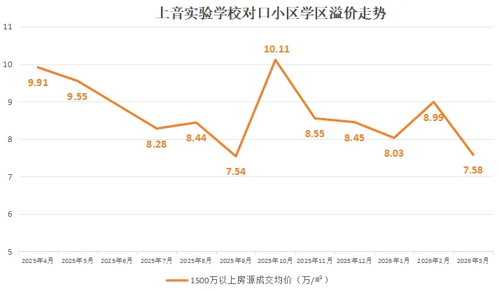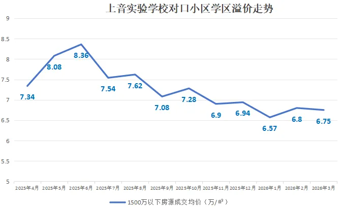 同一板块、同一周期对比,上音实验学区的价格稳定性明显更强于同济附属学区。