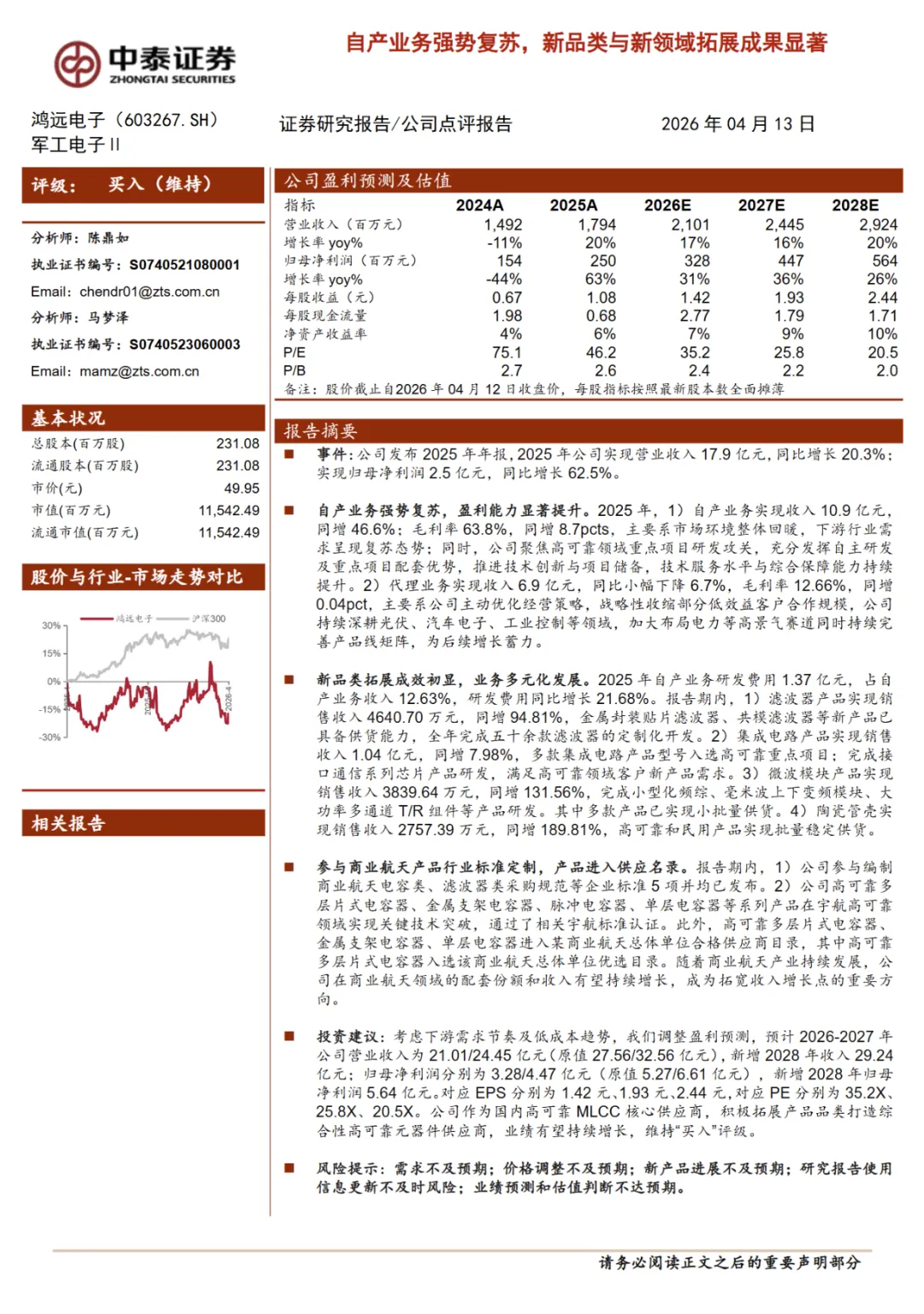 研报丨中泰证券:自产业务强势复苏,新品类与新领域拓展成果显著风险提示:需求不及预期;价格调整不及预期;新产品进展不及预期;研究报告使用信息更新不及时风险;业绩预测和估值判断不达预期。内容来源:中泰证券点击文末“阅读原文”,可查看完整研报。