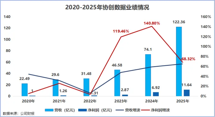 2020-2025年,公司的营收从22.49亿元增长到122.36亿元,五年时间翻了五倍。