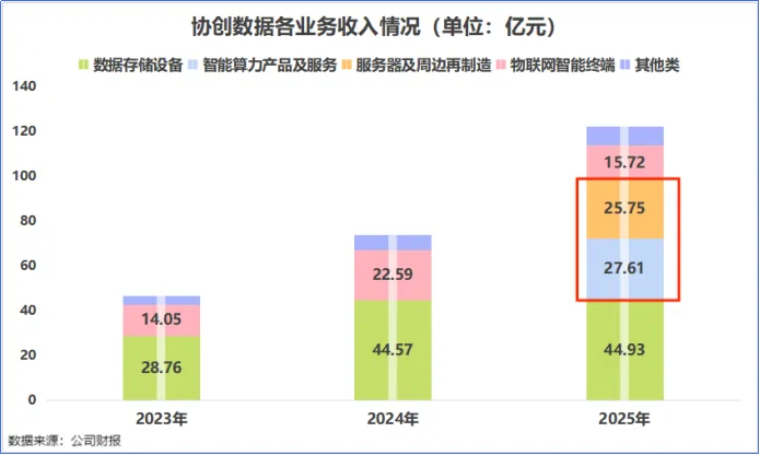 2025年,协创数据首次将智能算力产品及服务、服务器及周边再制造两项业务单独列出来,公司当年的业绩增量也主要来自这两项。