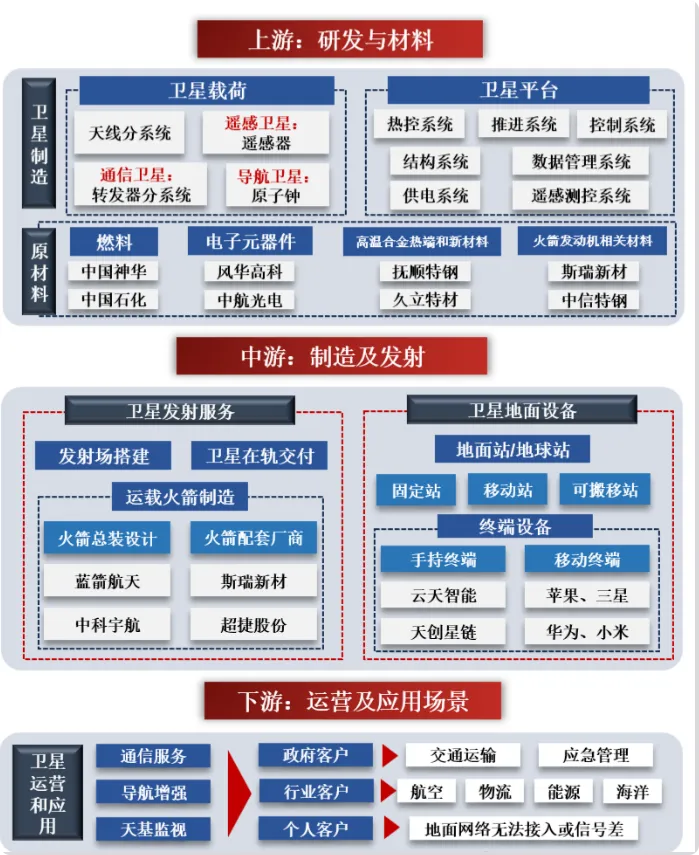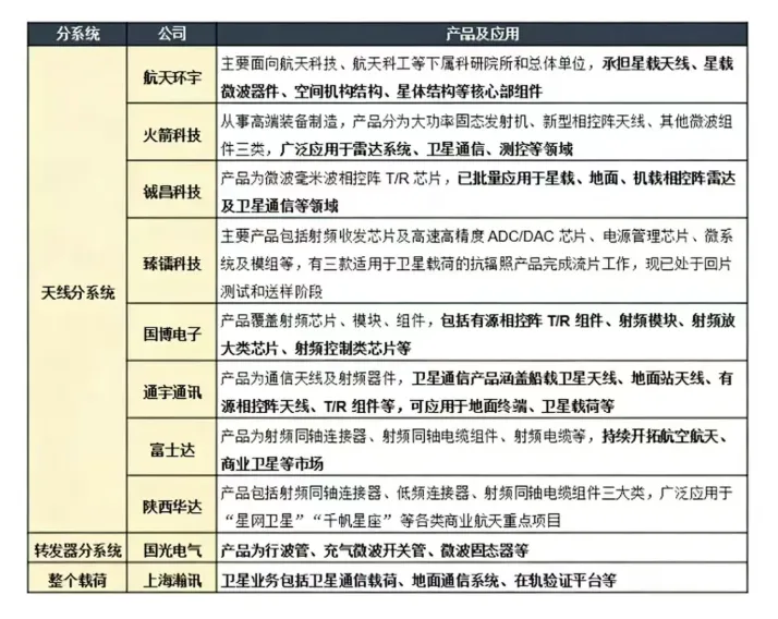 竞争格局方面,主要参与者包括 SpaceX、Airbus S.A.S.、Maxar Technologies、Northrop Grumman Corporation等。国内领先企业包括上海瀚讯、航天环宇、国博电子、臻镭科技、天箭科技、铖昌科技等。