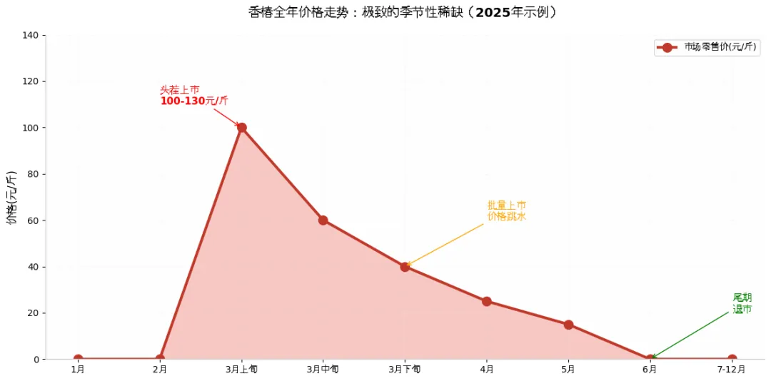 - 尾期(5月): 品质下降,价格跌至10-15元/斤,随后退市。