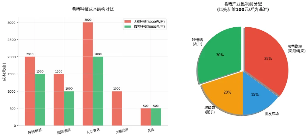 - 露天种植: 亩均投入5000元,产量2500斤/亩,集中3-5月上市,亩收益2-4万元。