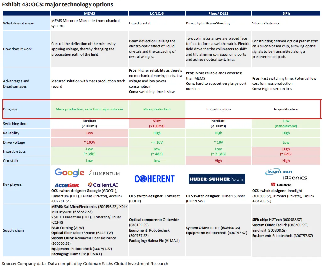 MEMS | 最高 | <100ms | ~3dB | 谷歌、Lumentum、Calient |
