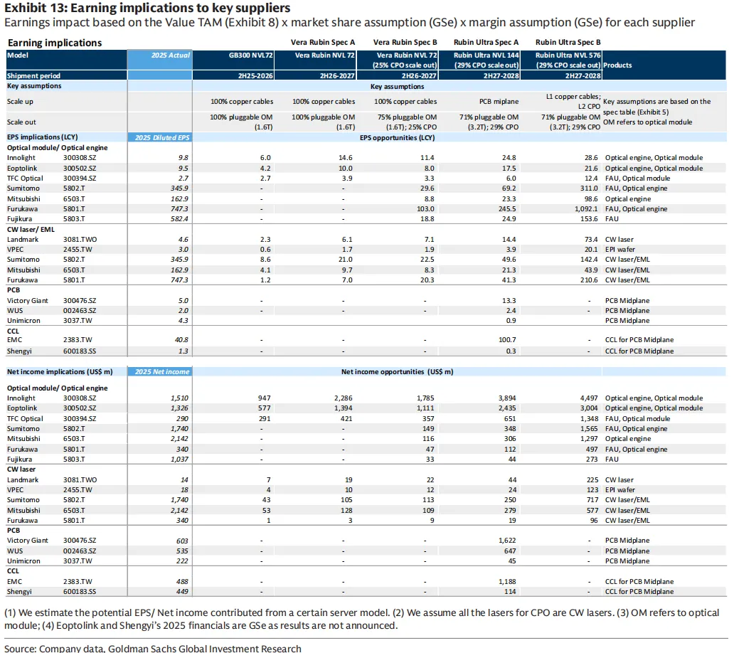 公司 | 2025实际EPS | GB300贡献 | Vera Rubin贡献 | Rubin Ultra贡献 | 核心产品 |