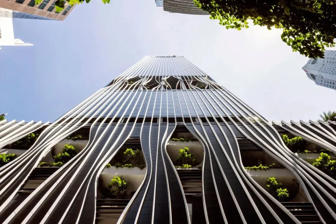 这座位于新加坡核心区的摩天大楼,通过一个横跨四层的“绿色绿洲”打破了摩天大楼的封闭感。
