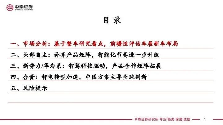 摘要:2026年北京车展恰逢L3自动驾驶规模化商用元年,聚焦自主、新势力、合资三大阵营变革。自主品牌密集兑现技术,华为乾崑智驾全面下沉,比亚迪、吉利推出旗舰车型与新平台。新势力掀起自研芯片竞赛,理想、蔚来、小米、小鹏均搭载高端算力平台,补齐纯电+增程矩阵。合资品牌全面导入中国智驾方案,大众、奥迪、宝马采用中方主导平台与华为、Momenta智驾,研发主导权向中国转移。展会呈现智驾平民化、芯片自研化、合资本土化三大趋势,提示乘用车销量、海外拓展、盈利不及预期风险。