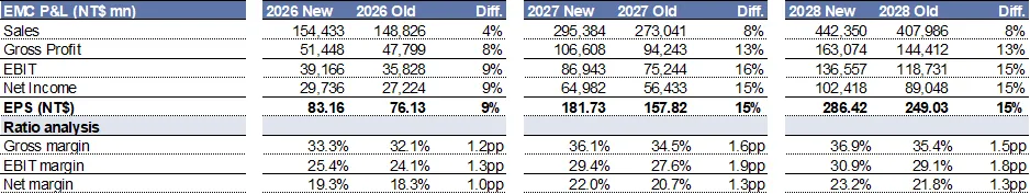 这次高盛覆盖的五家公司里,四家维持买入(EMC、TUC、GCE、ZDT),一家维持卖出(ITEQ),并且全线上调了目标价约15%。具体来说:EMC目标价从3500新台币上调至4020新台币,TUC从1015上调至1165,GCE从1210上调至1380,ZDT从295上调至338。