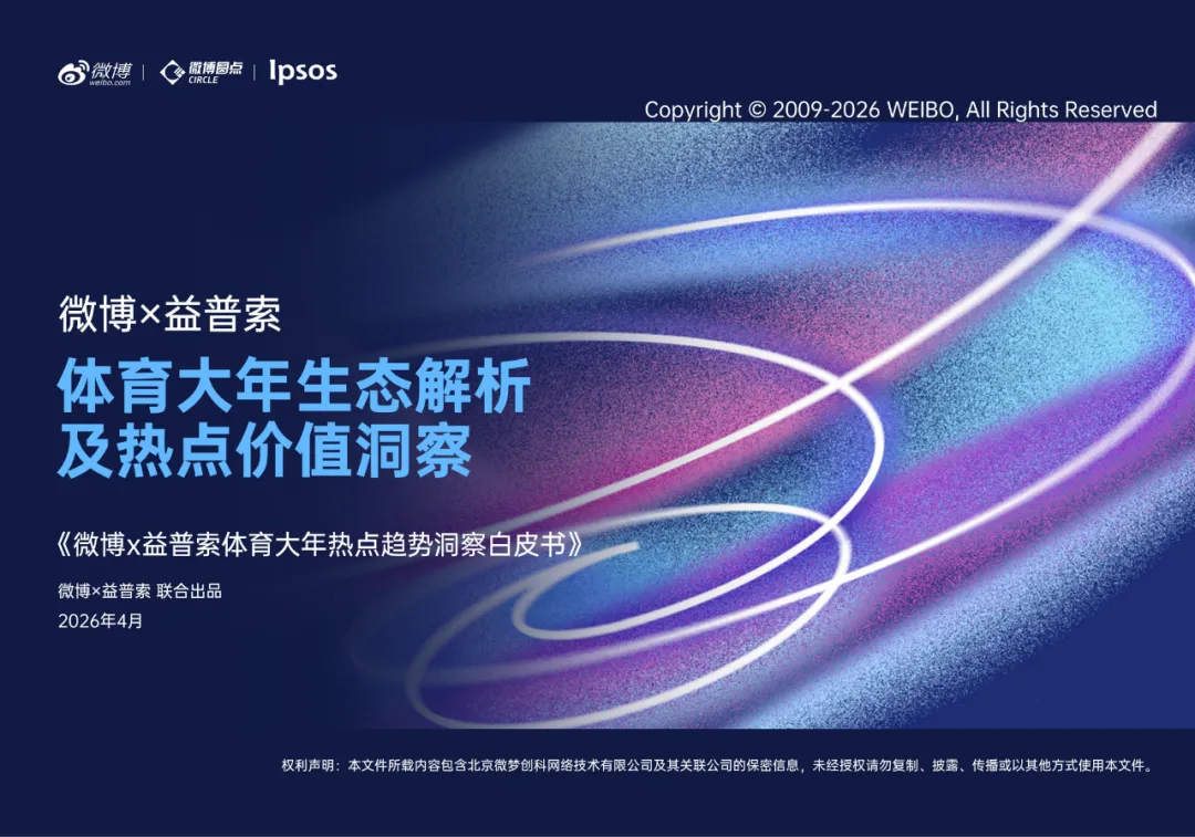 关注我们,后台回复“202604213”就可以获取《微博&益普索:2026体育行业热点趋势洞察白皮书》(完整版) 的全文下载链接。