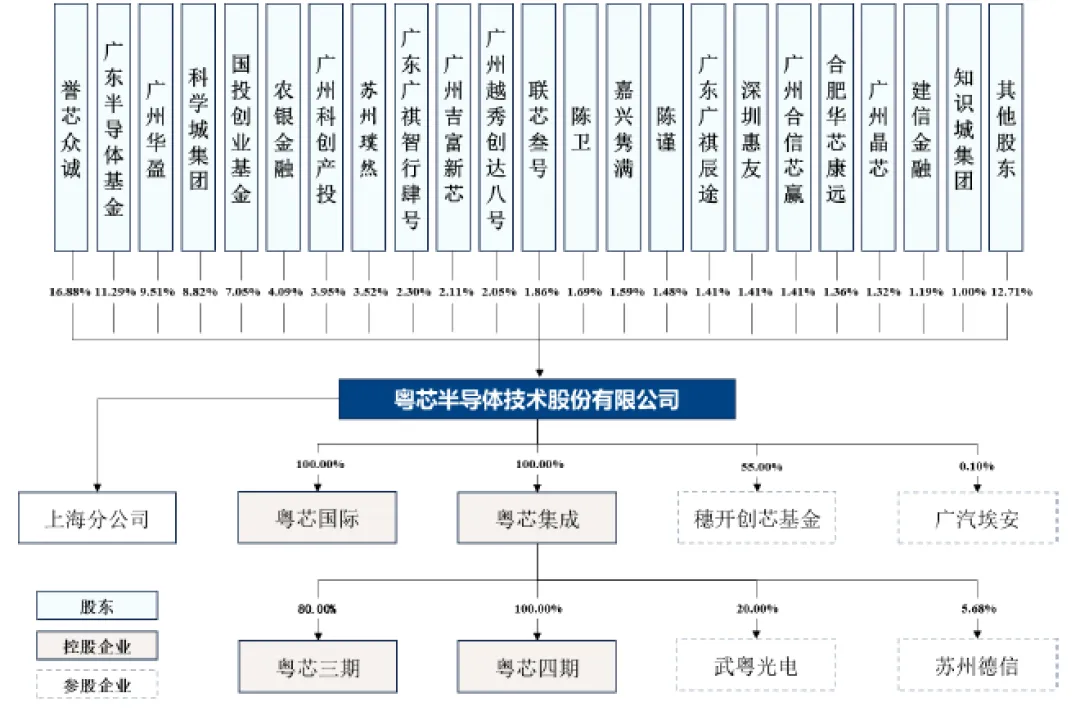粤芯半导体股权结构呈现分散化、多元化、国资与市场化资本融合的特征,无单一股东能够控制股东会、董事会或决定公司重大经营决策,不存在控股股东与实际控制人。