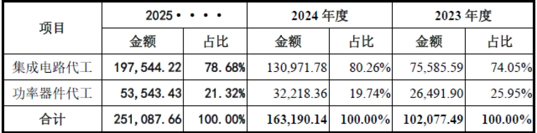 报告期内公司营收呈现高速增长态势,2023-2025年营业收入分别为10.44亿元、16.81亿元、25.82亿元,复合增长率高达57.30%,远超行业平均水平。收入增长核心驱动为产能释放、工艺平台完善、客户拓展及下游需求复苏,2025年产能利用率接近饱和,主营业务收入占比超97%,主业突出。