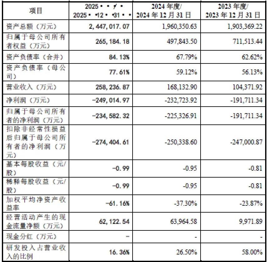 公司资产规模持续扩张,2025年末总资产244.70亿元,其中固定资产123.96亿元,占比50.66%,符合重资产行业特征;在建工程15.86亿元,主要为四期项目建设,未来产能增长潜力充足。负债方面,2025年末合并资产负债率84.13%,处于较高水平,主要因产能扩张依赖债务融资,流动负债与非流动负债规模较大。但随着本次IPO募集资金到位,财务结构将持续优化。