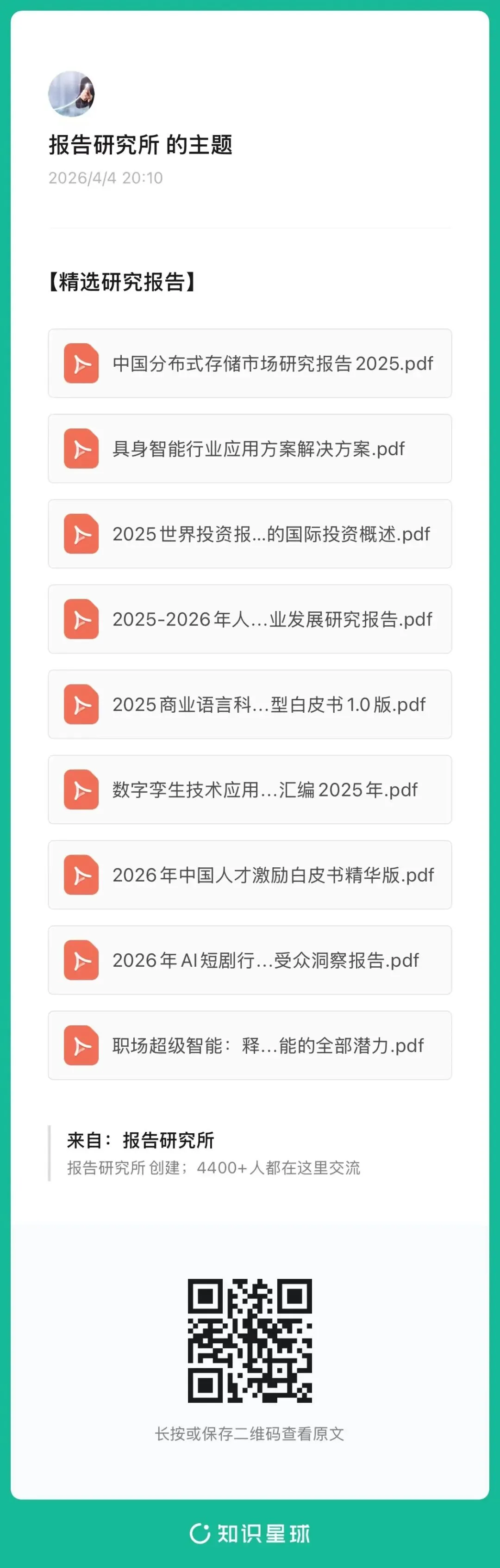 如果您需要阅读并下载与投资、学习相关的宏观、行业、公司、个股、政策研报,了解大势及行业领域状况,在此向您推荐我们的知识星球社群,一个为您提供高价值服务的研报宝库。