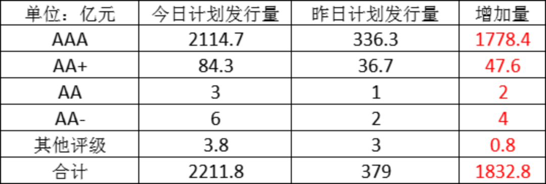 今日存单计划发行量规2211.8亿元,较上一工作日计划发行量大幅增加,增加了1832.8亿元