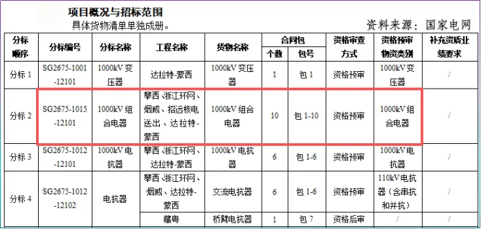 比起金额,此次招标的还有一大亮点—10包1000KV组合电器,业内测算其金额预计可达50亿元,约占招标总额的56%,为最大的价值量来源。