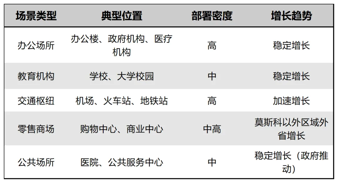 俄罗斯自动售货机主要应用场景及分布情况如下: