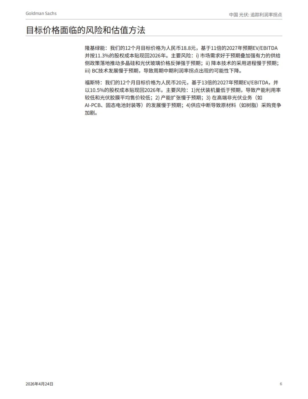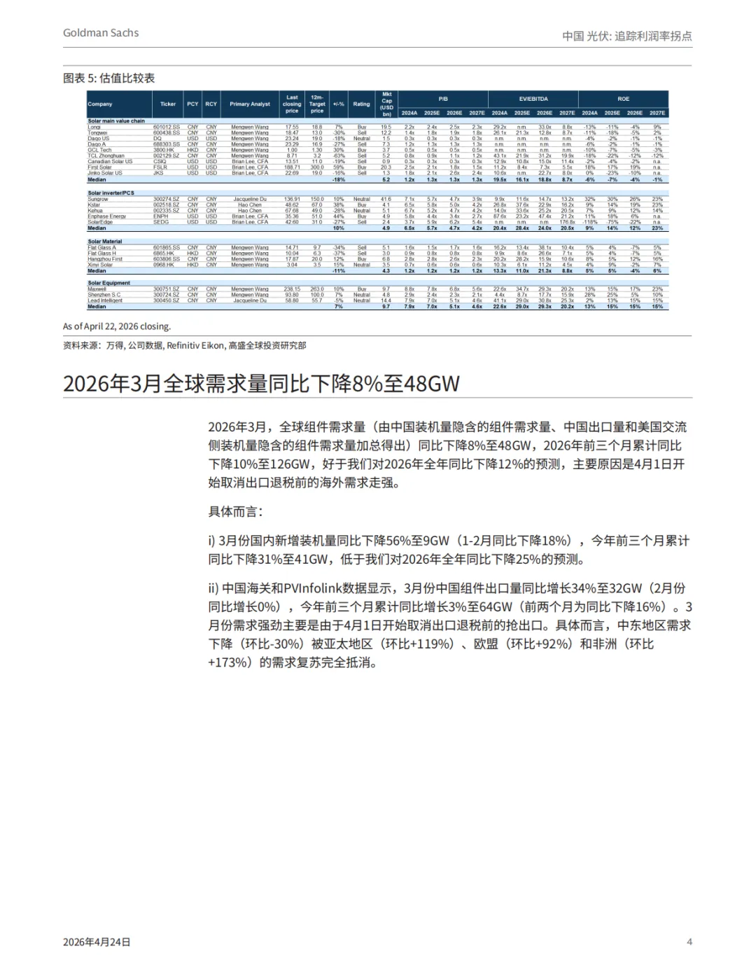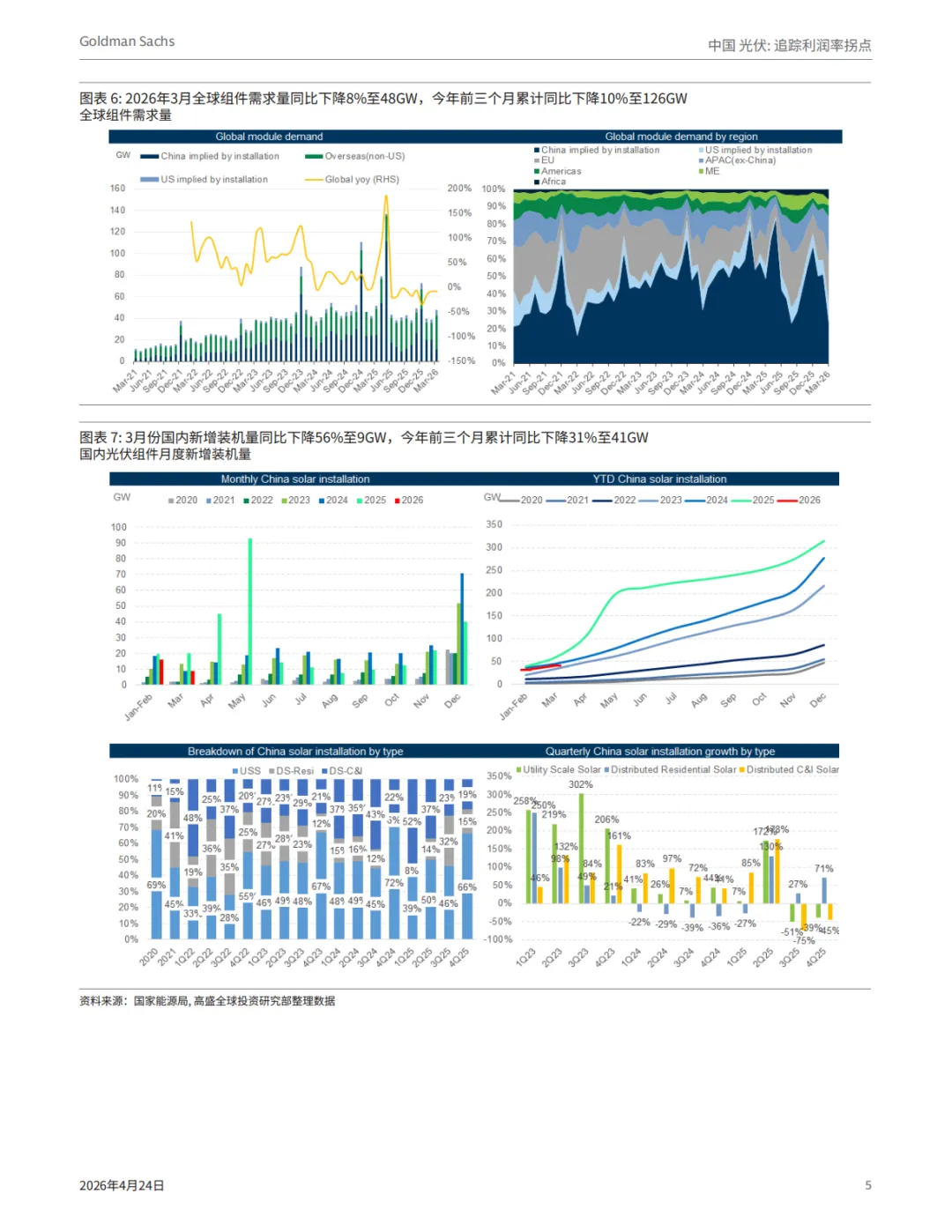 本期文章: 『研报』高盛-中国光伏行业: 追踪利润率拐点,2026年4月,多晶硅和光伏玻璃价格降至谷底新低;海外市场组件价格上升